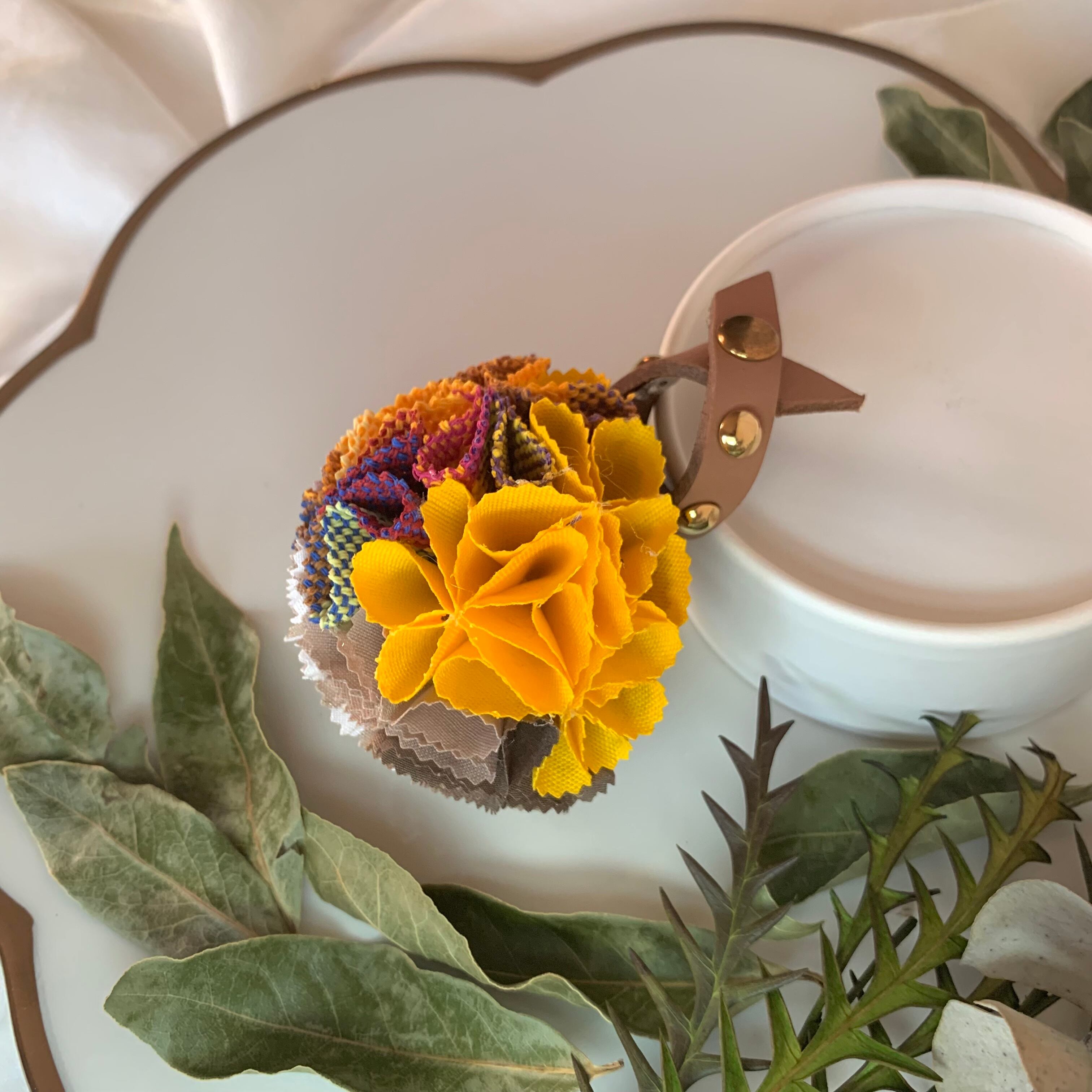 2wayブローチorバックチャーム/コサージュ/さをり織り/ギフト/スタッズベルト