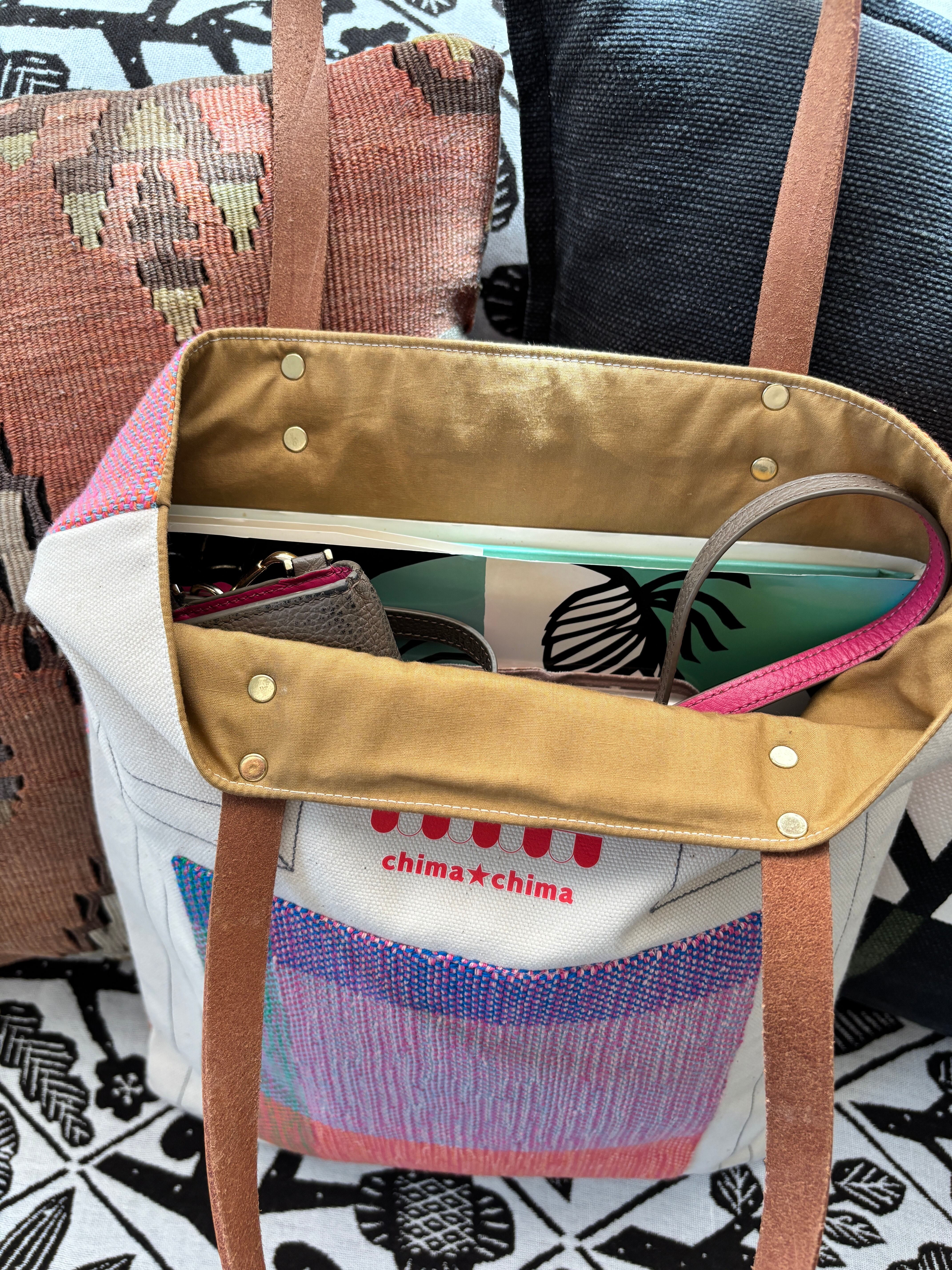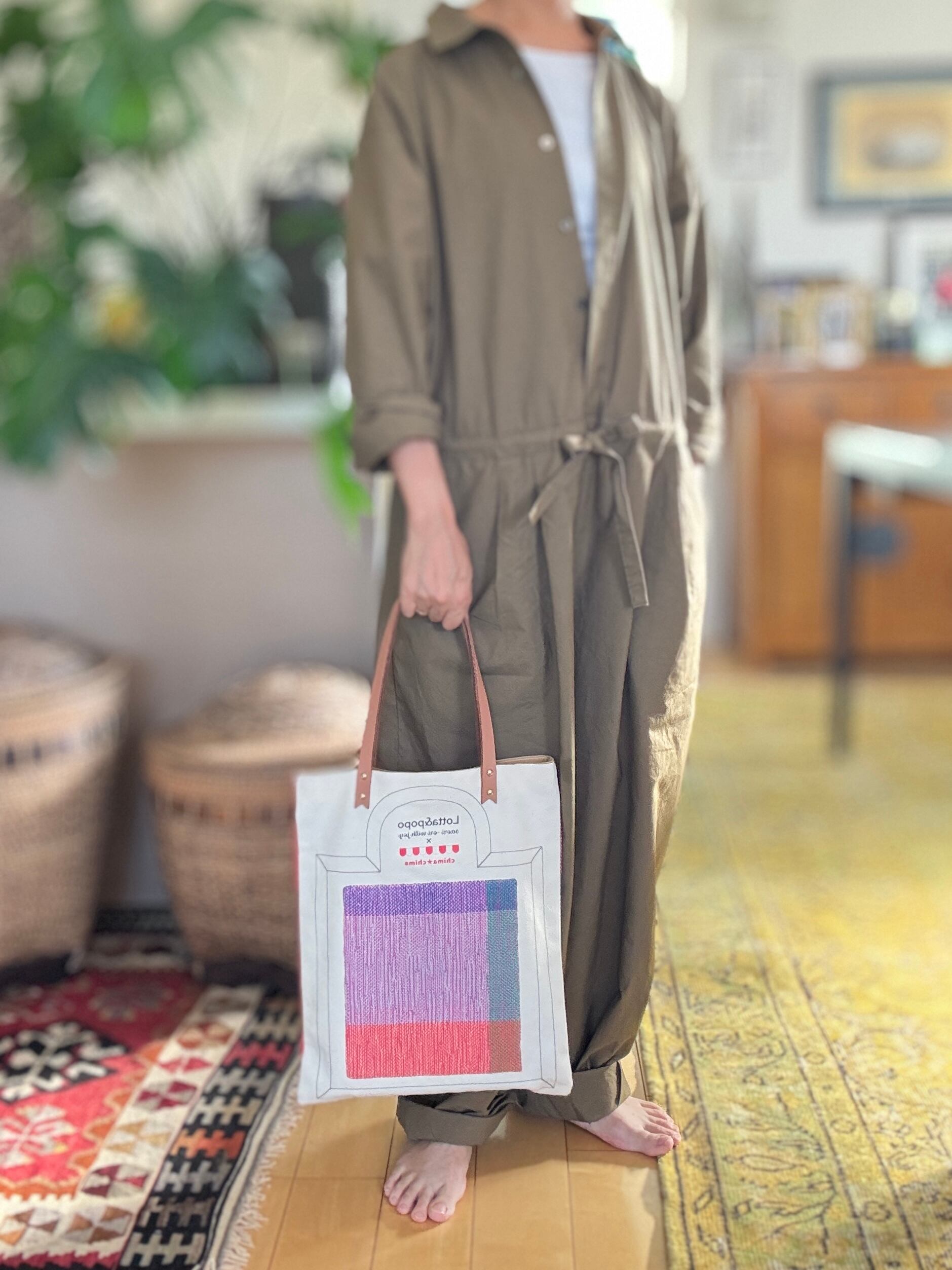 Lottaちゃんのa4バッグは、さをり織りの生地を使用した一点ものです。A4サイズがゆったり入ります。お気に入りの本や資料、水筒・スリッパなどもすっきり収納できます。ちょっと図書館まで、ちょっと展覧会まてま、ちょっと旅のサブバッグにまで。本をいれたり、展覧会の図録を入れたり、旅先のパンフレットを入れたりお土産も入れたり。お買い物や日常のお出かけに大活躍!さをり織りの魅力を感じながら、あなたのスタイルを楽しんでみてはいかがでしょうか?