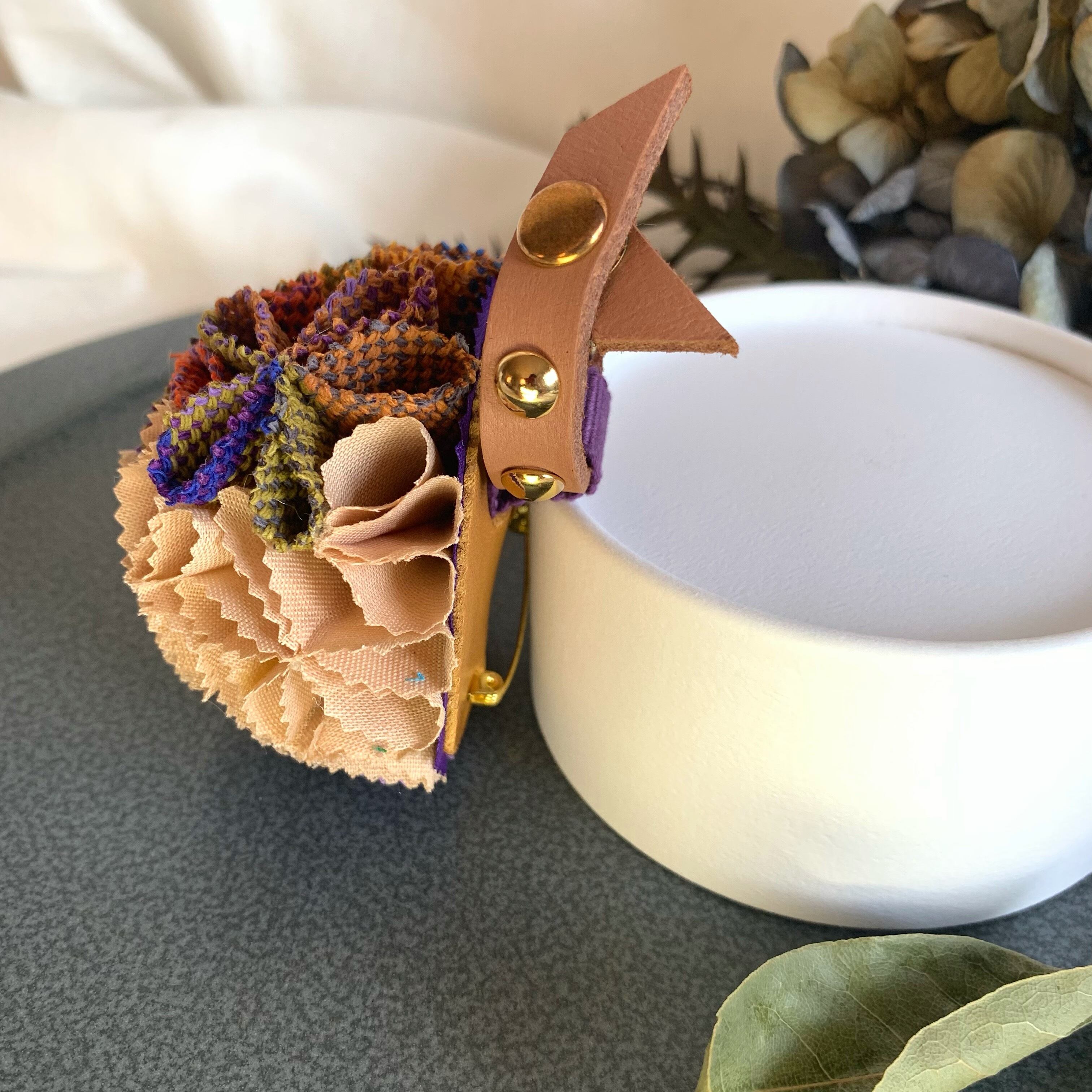 ▪️素材本体 コットン 革製品 真田紐 コサージュピン
